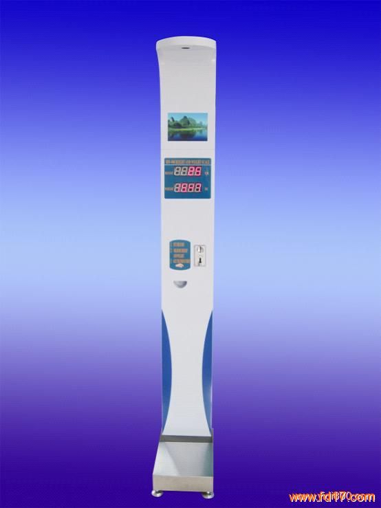 电脑人体秤HW-900型. 测高选用高精度探测器,测重选用高性能传感器,测量血压选用臂式血压计,重复性好,测量结果客观,准确。广泛用于医院,体检中心,药店,商场,超市,等人流量大的场所。