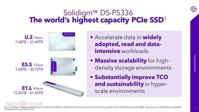 据TechPowerUp的消息,Solidigm今天推出了最大容量为61.44TB的PCIe SSD D5-P5336。