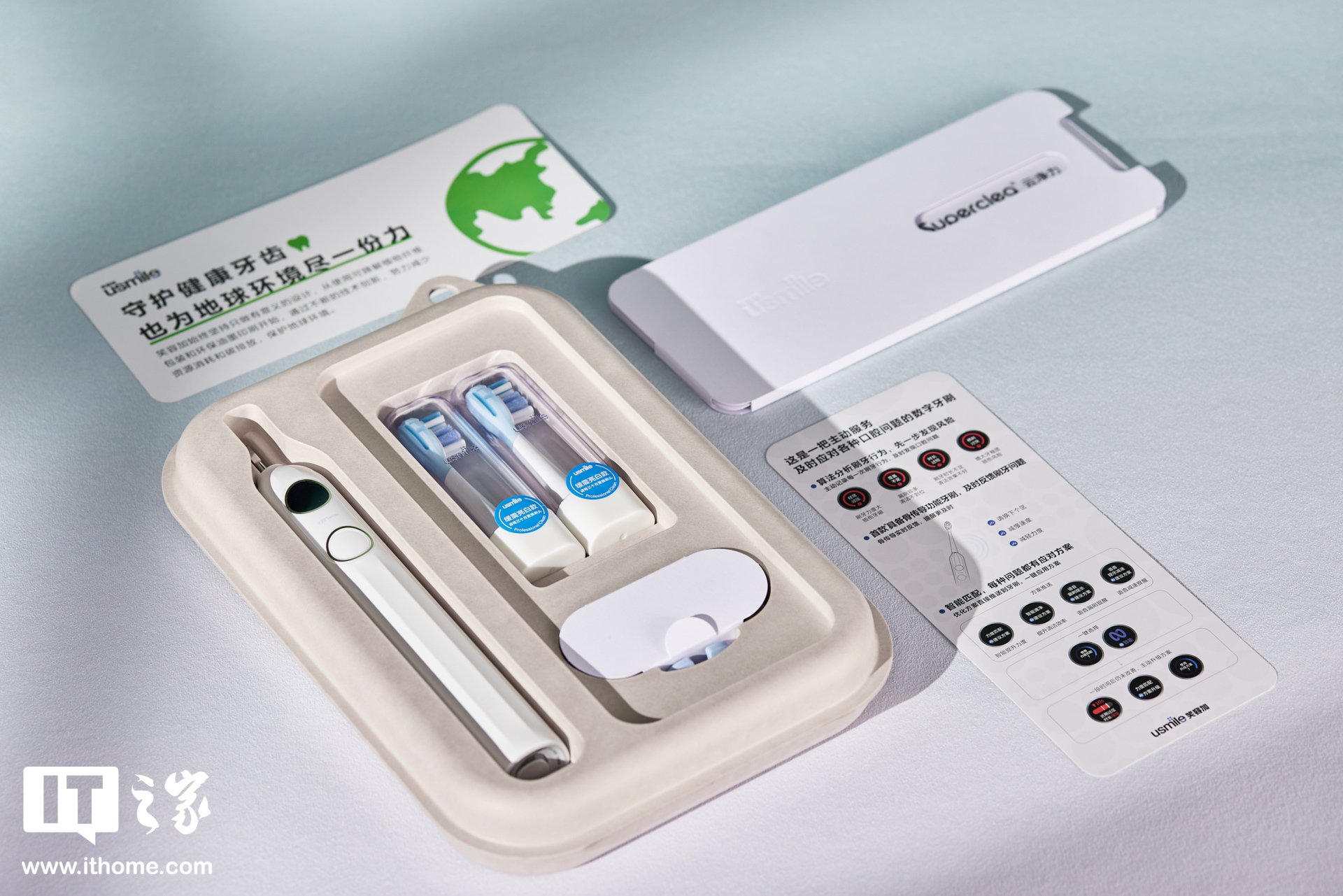 【IT之家开箱】usmile 笑容加数字牙刷 Y20 图赏:智能 AI 算法小模型、笑容加首款骨传导